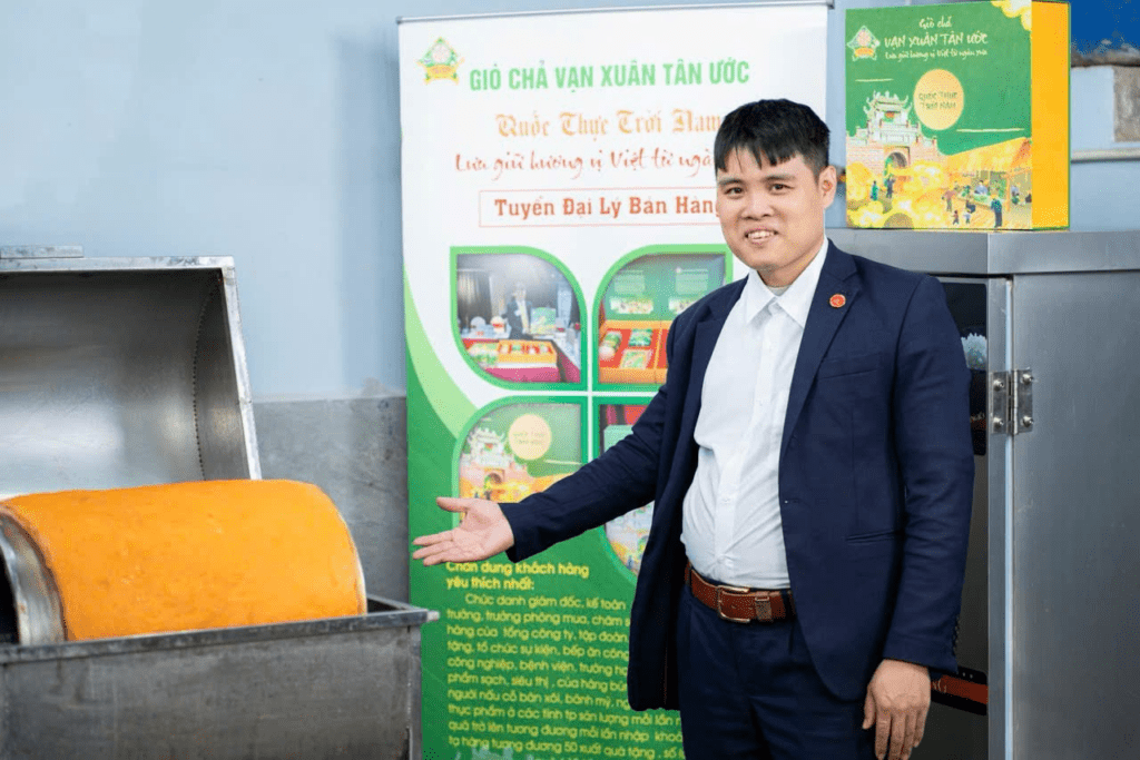 Trong dòng chảy của làng nghề truyền thống hơn 500 năm tuổi tại Tân Ước (Thanh Oai, Hà Nội), doanh nhân Phan Văn Khiêm nổi lên như một người “giữ lửa” đầy sáng tạo. Không chỉ dừng lại ở việc sản xuất đơn thuần, anh đã đưa thương hiệu Giò chả Vạn Xuân Tân Ước vươn xa, khẳng định vị thế trên bản đồ ẩm thực Việt.