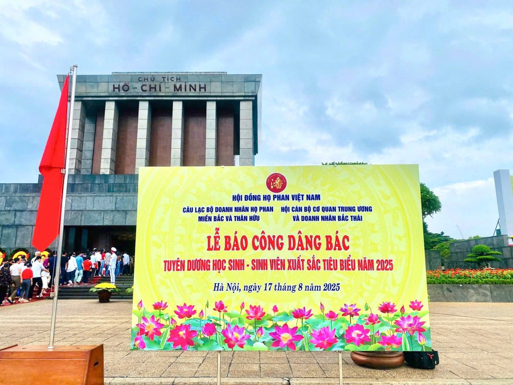 Hành trình của các em không chỉ dừng lại ở việc nhận bằng khen; Đoàn còn trang nghiêm vào Lăng viếng Chủ tịch Hồ Chí Minh, thăm Phủ Chủ tịch. Lễ tuyên dương ấm áp, trang trọng này, diễn ra trong không khí cận kề Tết Độc lập 2/9, đã truyền thêm ngọn lửa tự hào dân tộc, động viên mạnh mẽ phong trào khuyến học của con em Họ Phan và Thân hữu.